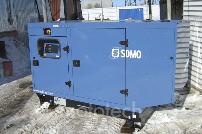 Дизельный генератор SDMO J77K в кожухе мощностью 56 кВт. Подробное описание и заказ оборудования.